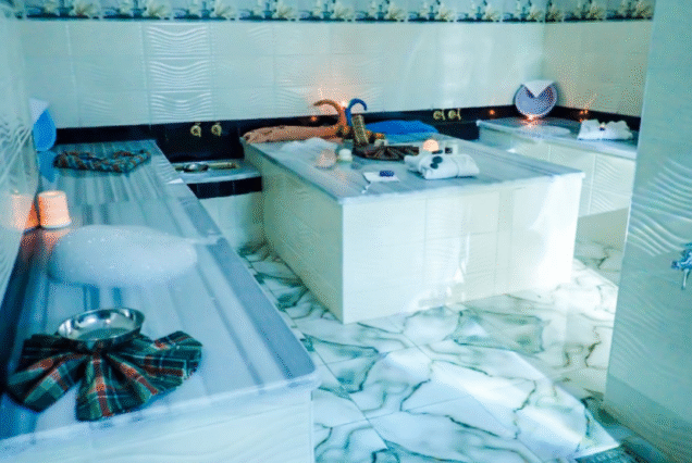 - Feel steam working its magic, softening your skin and preparing you for the cleansing ritual ahead.