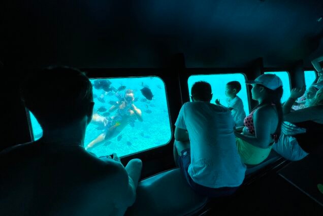 Cruise for about 1.5–2 hours and enjoy a close-up view of coral reefs, colorful fish, and marine life — all without getting wet!
